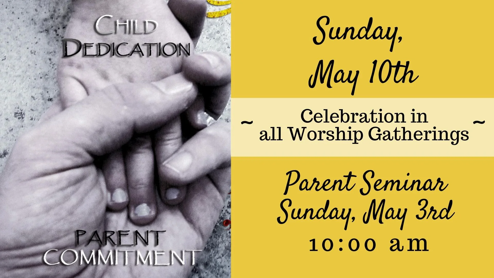 Children are a gift from God, and parents are given the responsibility to train and guide them. If you have a young child you would like to dedicate, join us for a Parent Seminar and then the opportunity to dedicate your child the following week.